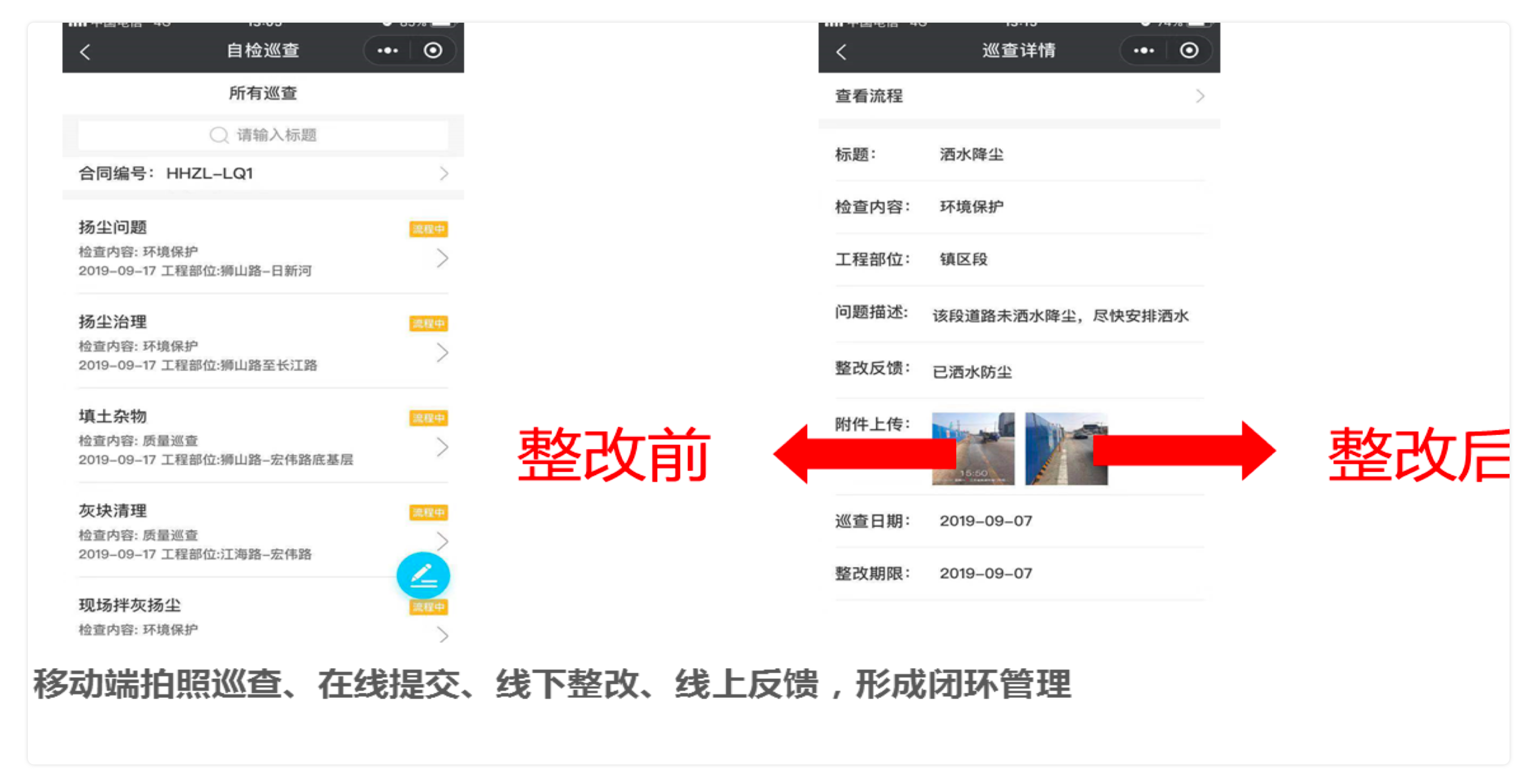 通過(guò)移動(dòng)APP應(yīng)用,將發(fā)現(xiàn)的安全問(wèn)題及時(shí)上報(bào)進(jìn)行整改,針對(duì)整改情況進(jìn)行確認(rèn),將安全隱患排除,有效的形成安全管理閉環(huán)。